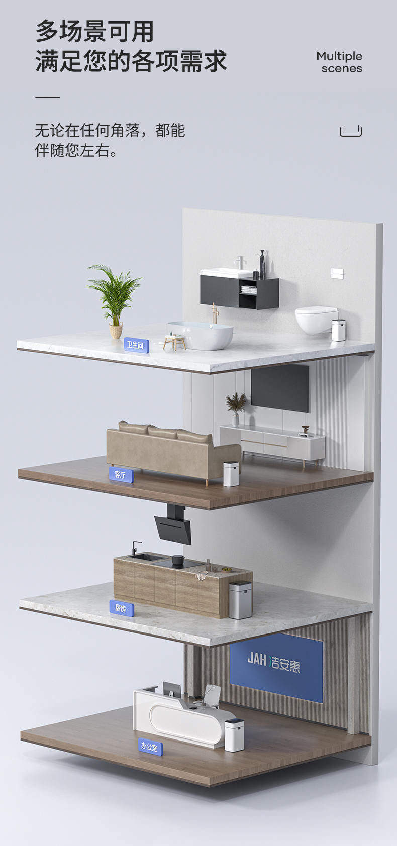 公司創立“潔安惠”品牌(英文“JAH”),正式進軍品牌市場,以智能感應垃圾桶這一產品為主要載體,將家居生活同智能化完美結合。經過潔安惠人鍥而不舍的努力,公司高端垃圾桶產品線不斷擴展與延伸,目前已發展成為國內知名的高端和智能垃圾桶生產商及品牌商。