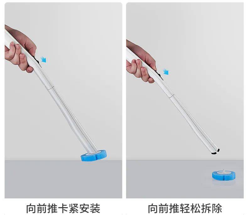 用完即扔,向前推動刷桿上的按鈕,夾住刷頭就可以使用,安裝替換方便。